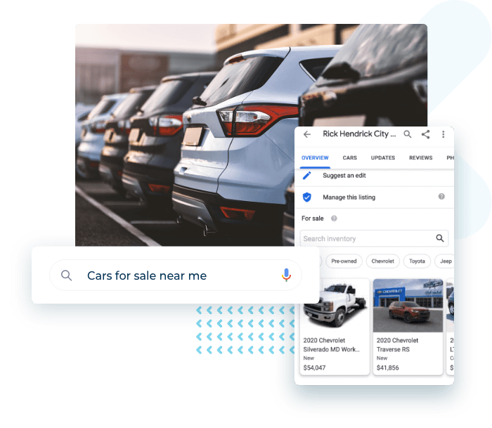 Include your inventory on Google through your Business Profile. By activating live inventory, Google users can search, filter, and easily learn more about cars for sale, giving your dealership extra visibility.